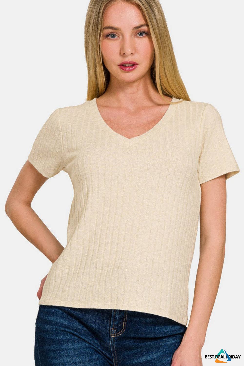 The Ribbed Short Sleeve T-Shirt is a classic and versatile staple for any wardrobe. With its ribbed texture and simple design, this t-shirt offers a timeless and understated look. The short sleeves make it perfect for layering or wearing on its own during warmer weather. Made from high-quality materials, this t-shirt is comfortable and durable for everyday wear. Pair it with jeans, shorts, or a skirt for a casual and effortless outfit. The ribbed texture adds a subtle detail to the t-shirt, creating a stylish touch. Elevate your basics with the classic and versatile Ribbed Short Sleeve T-Shirt.