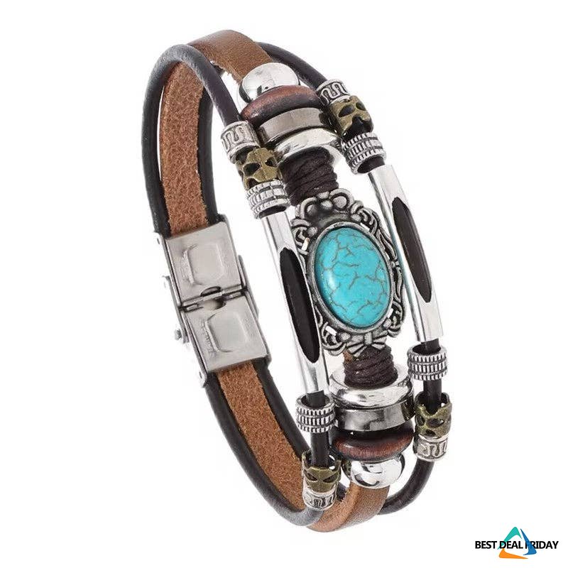 Elevate your style with a men's leather bracelet featuring turquoise beads and a stainless steel clasp. This PU bracelet is perfect for leisure fashion in all seasons - spring, summer, autumn, and winter. A great gift idea for business or casual wear, offering a versatile and trendy all-match accessory.