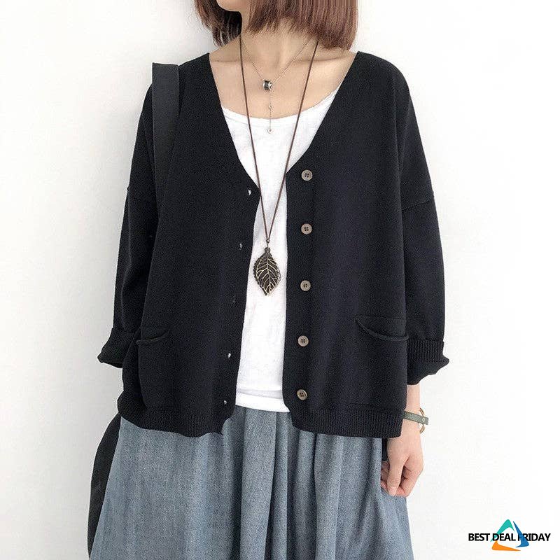 Elevate your wardrobe with this loose and artistic vintage cardigan sweater. Crafted with a unique design that exudes a sense of nostalgia, this versatile piece is perfect for layering in any season. Embrace the timeless charm of vintage fashion while staying cozy and stylish.