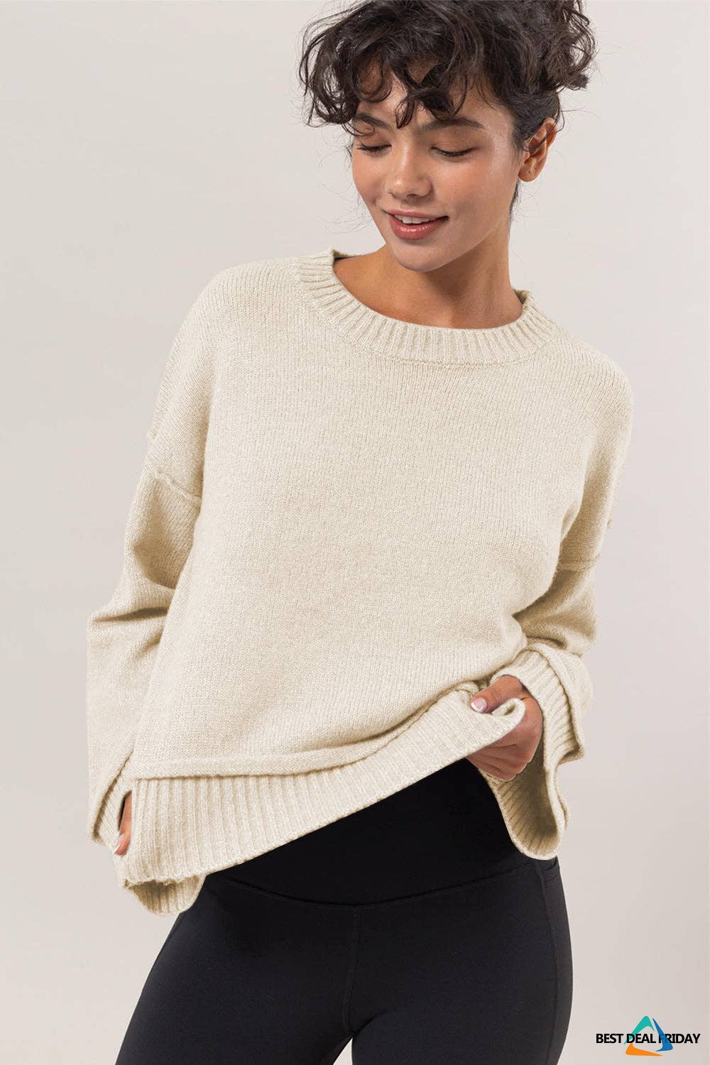 The Round Neck Dropped Shoulder Ribbed Sweater is a modern and versatile addition to your wardrobe. The ribbed texture adds a touch of sophistication, while the dropped shoulder design gives a relaxed and stylish look. The round neckline offers a classic silhouette that is easy to layer with other pieces. Elevate your outfit with this chic and comfortable sweater that can be dressed up or down for any occasion.