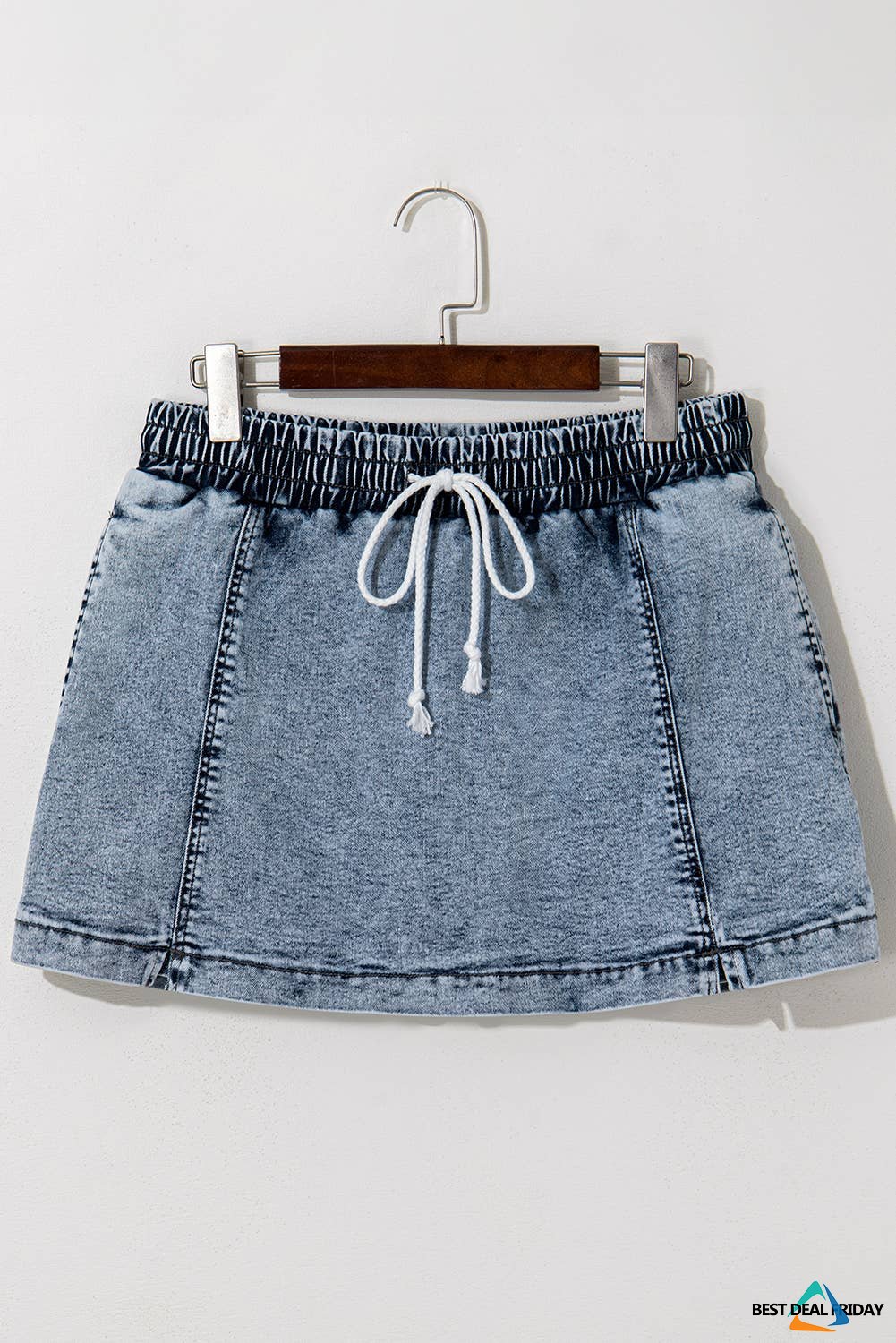 This denim shorts looks like a mini skirt from the front angle.