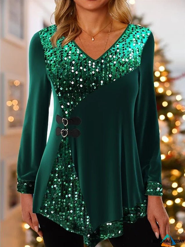 Get ready to stand out and sparkle in style with this gorgeous Women's Sparkly Green Velvet Sequin Blouse. Designed to make a statement, this blouse is perfect for parties, casual outings, or adding a touch of glam to your everyday look.